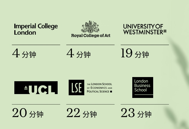 此外,蒙特安维旗下楼盘维德苑(The Verdean)、汇璟湾(Queens Cross)、珑茵港(Royal Eden Docks)和沛粼半岛(The Bellamy)出门步行片刻即可到达地铁站。乘坐伊丽莎白线,30分钟内便可抵达伦敦市中心的顶级学府。此外,该线路还直达金丝雀码头和希思罗机场,减少换乘时间,为学生们在学习之外的娱乐和出游提供了极大的便利。