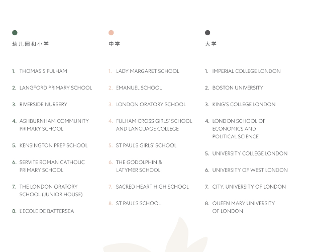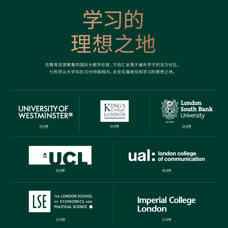 蒙特安维旗下精品楼盘万珀汇(One Clapham)坐落于遍布学子的活力社区,从万珀汇出发,帝国理工大学、伦敦政治经济学院等七所顶尖大学均在30分钟路程内,周边超过100所幼中小学校均被英国教育标准局(Ofsted)评为“杰出”和“良好”等级。另一楼盘切尔西御园(Chelsea Botanica)地处名流聚集的西南伦敦,周边云集众多闻名遐迩的幼儿园、中小学及高等院校,便利生活和高品质的教育资源触手可及。