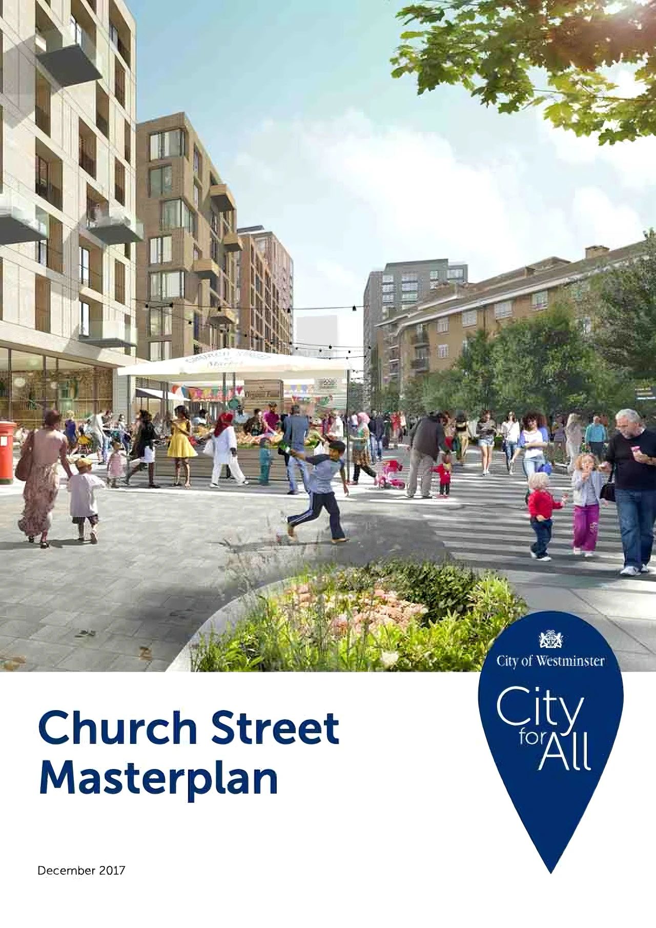 在过去,该区域因经济活力不足,现有住房及公共社区设施不完善等,难以满足居民当下生活需求及未来发展的需要。为此,威斯敏斯特市政府自2011年起便着手筹备对该区域进行改造升级,并于2018年初正式发布了Church Street总体规划方案(The Church Street Masterplan)。这个宏伟的改造计划堪称一场全方位的城市焕新工程,涵盖住宅、交通、商业、景观四大维度。